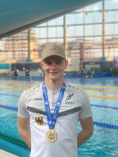 “Justus Mörstedt widmete sich bis zu seinem 14. Lebensjahr in seiner Freizeit dem Triathlon, bevor er sich endgültig auf sein Lieblingselement, das Wasser, fokussierte und Finswimmer wurde. Seit 2019 ist er Sportsoldat und studiert und trainiert im Leistungszentrum Leipzig.